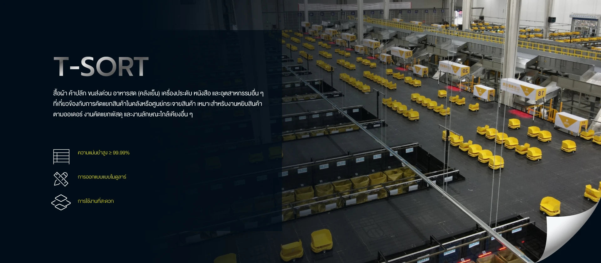 เหมาะสำหรับคลังสินค้าและศูนย์กระจายสินค้าที่ต้องคัดแยกพัสดุปริมาณสูงไปหลายปลายทาง โดยเฉพาะอีคอมเมิร์ซ โลจิสติกส์ และพัสดุขนส่ง ที่ต้องการเพิ่มความเร็ว ลดการใช้แรงงาน และขยายระบบ T-Sort ในอนาคต